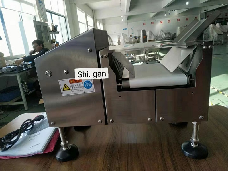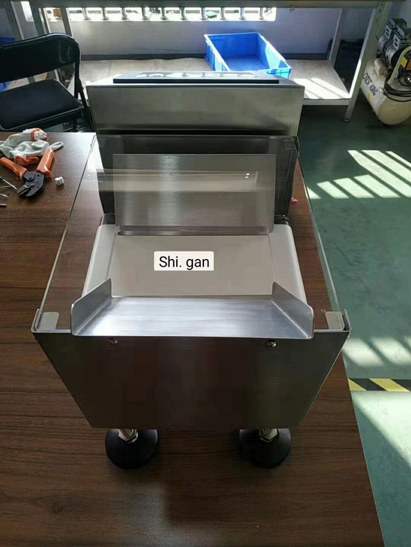 4. Place the product on the slide, the slide falls onto the conveyor belt and is weighed. Automatically checks the product weight and compares it to a set range value.