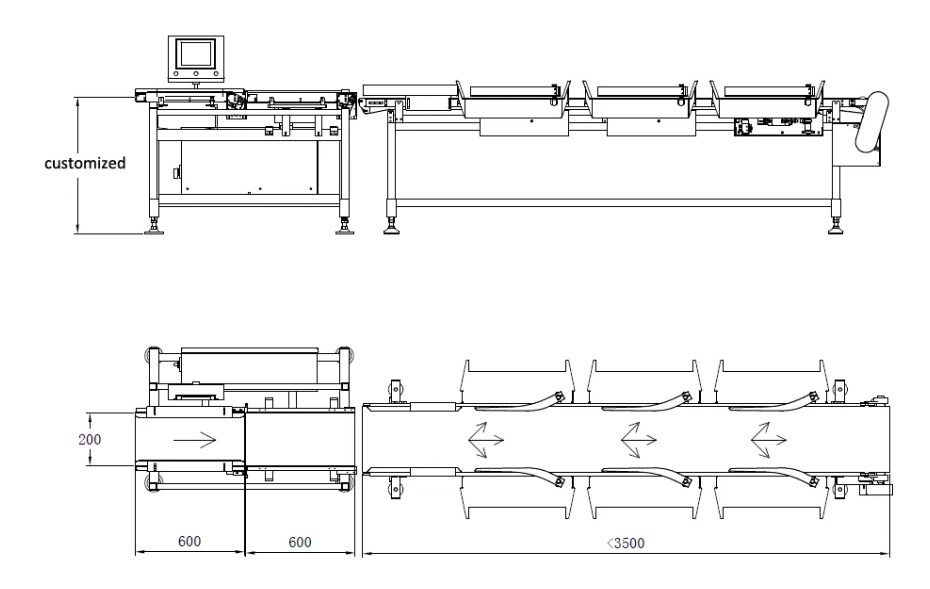 Food multi-stage sorting checkweighers are mainly used for weighing and sorting machines in production lines. They can automatically sort and collect products of different weights according to the set weight level, realizing intelligent standardized automatic weighing and sorting specifications and levels. Automatic multi-stage sorting checkweighers use imported special dynamic weighing devices to achieve high-speed and stable measurement; automatic sorting to eliminate human errors. Dynamic multi-level weight sorting checkweighers have complete specifications and support full-function customization services. Any OEM and customer design orders are welcome! If you are interested in our products, please feel free to contact us.